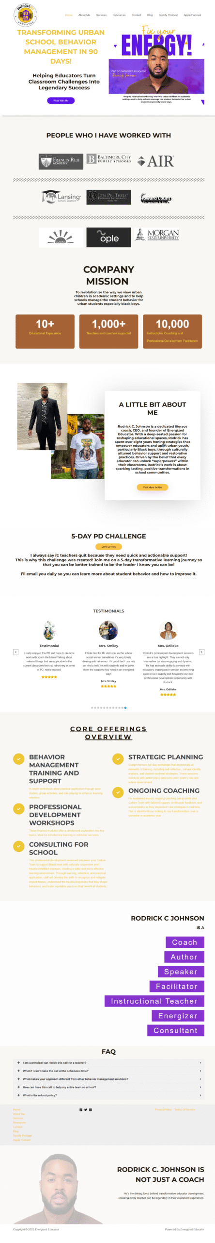 About section – Testimonial Section – Contact Section – Services Section.
